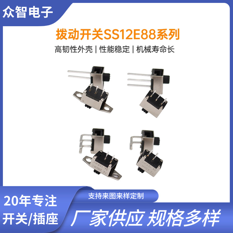 > 1P2T两档电源滑动开关SS-12E88大电流、弯脚竖拨小家电开关拨动开