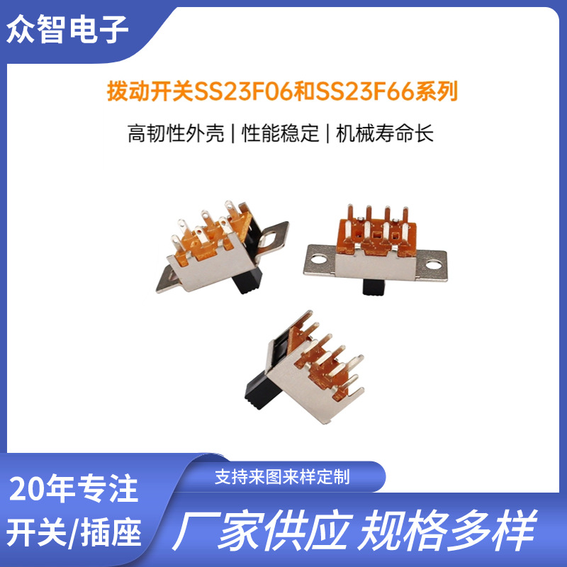 厂家现货 两排三挡6脚立式拨动开关SS-23F06灯饰照明触通滑动开关
