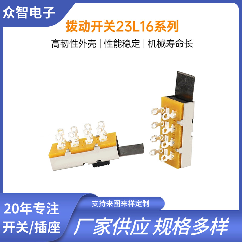 大电流2P3T孔脚立式拨动开关SS-23L16 3档两排8脚电吹风 电热毯开