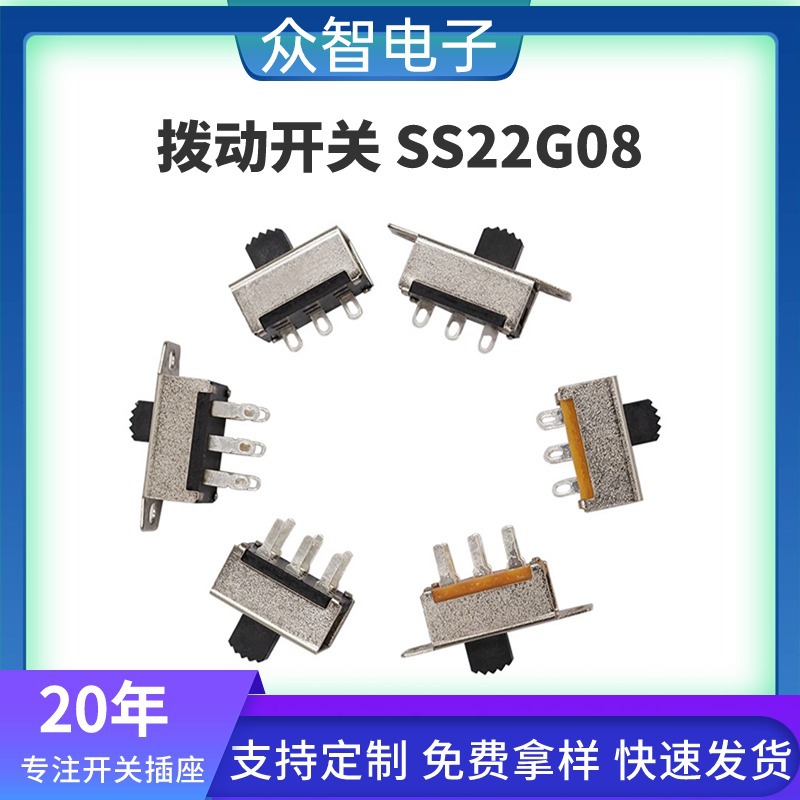 > 大电流SS-22G08两档拨动开关直插小家电吹风机电源开关