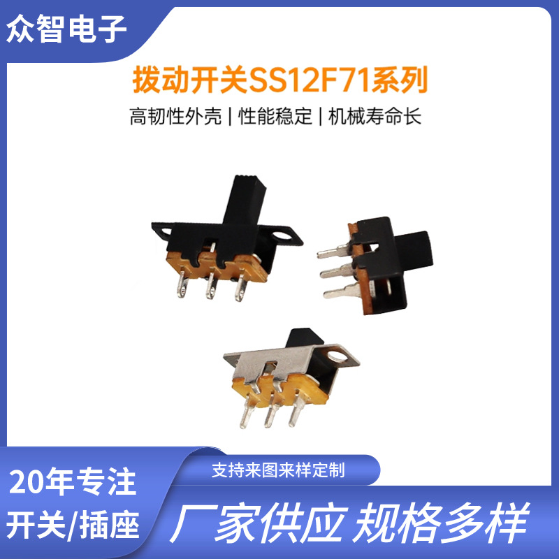 > 环保SS12F712挡有耳爆款高品质小型迷你拨动开关 电蚊拍