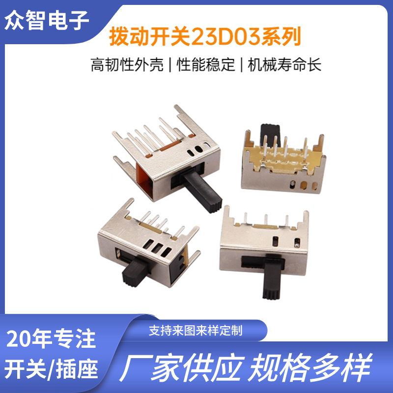 SK-23D03三档拨动开关 2P3T厂家直供 8脚侧拨卧式 小家电滑动开关