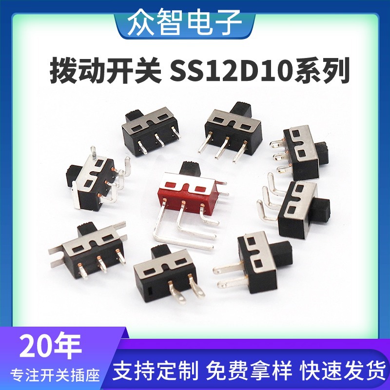 > 定制耐高档高温大电流拨动两档三脚SS12D10弯脚卷发棒直发器开关