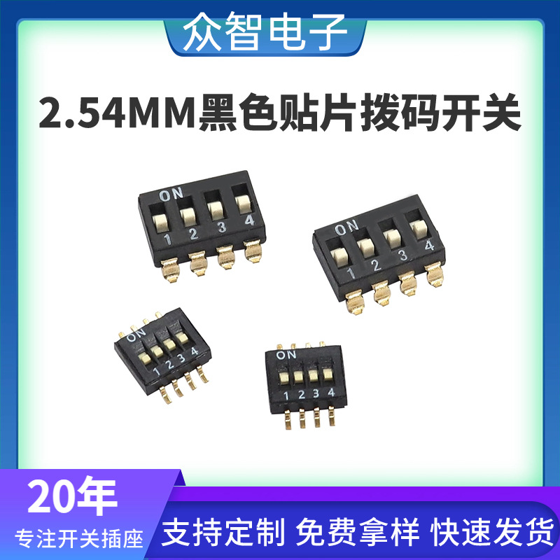 厂家现货2.54MM间距SMT拨码开关1-20位镀金脚直插贴片开关