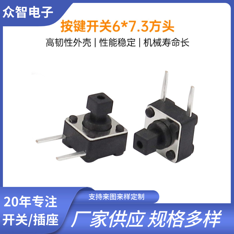 > 轻触开关6-7.3方头 按键开关 汽车遥控微动开关 两脚贴片开关.3方头按键开关汽车遥控微动开关两脚贴片开关