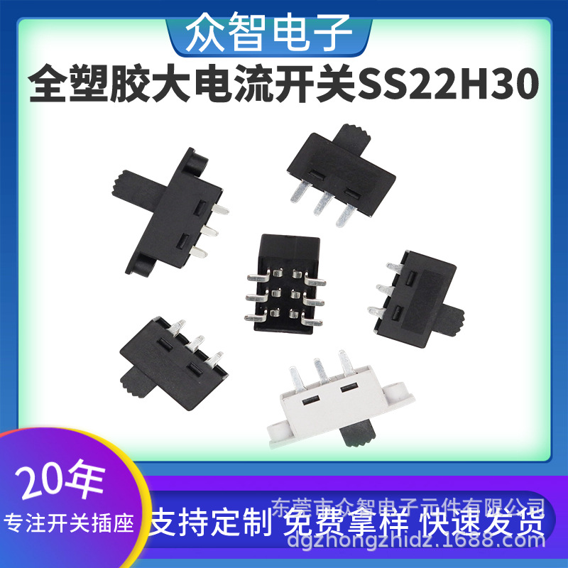 > SS22H30耐高温大电流两档拨动开关灯饰照明光源控制 10A滑动开关