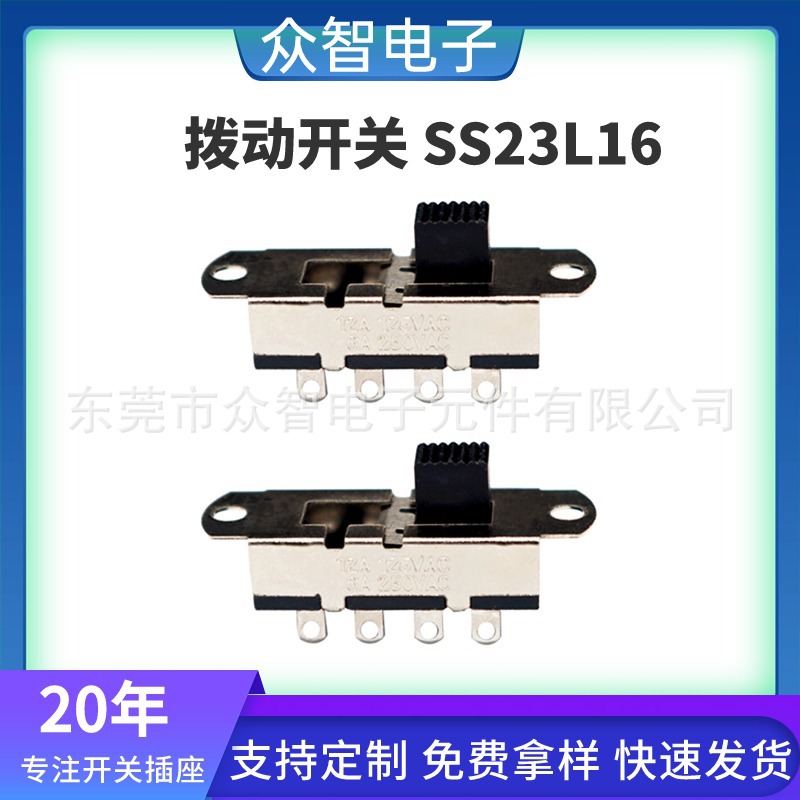 > 三挡定制电源立式高品质无人机大电流拨动开关SS23L16有耳短孔脚