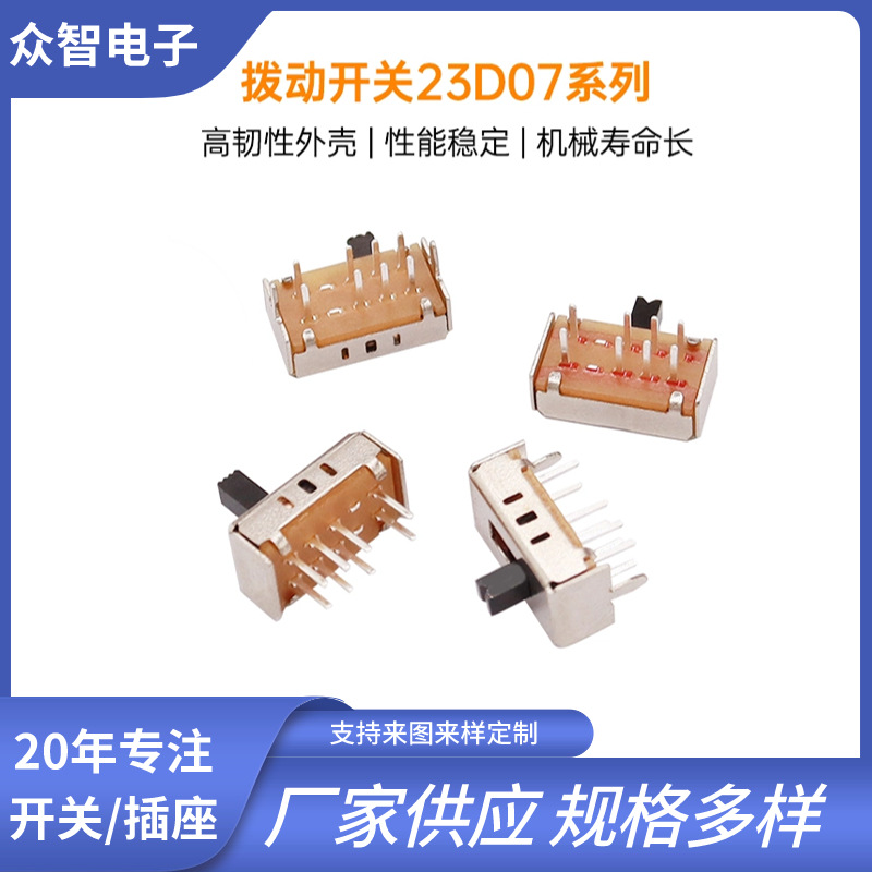 SK-23D07胶的耐高温2极3位卧式拨动开关批发滑动开关
